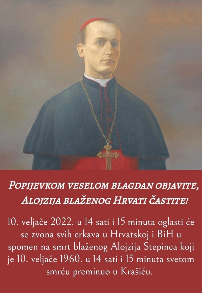 U četvrtak, 10. veljače 2022. godine u 14 sati i 15 minuta oglasit će se zvona svih crkava u Hrvatskoj i BiH u spomen na smrt blaženog Alojzija Stepinca