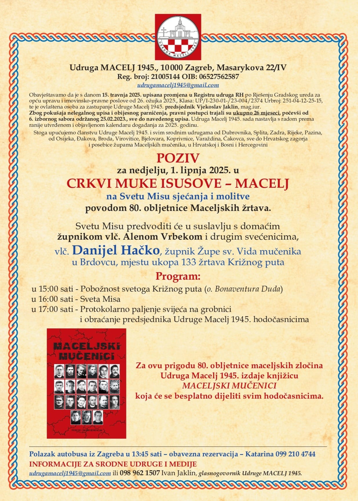 Damir Borovčak: POZIV za nedjelju, 1. lipnja 2025. u CRKVI MUKE ISUSOVE – MACELJ na Svetu Misu sjećanja i molitve
