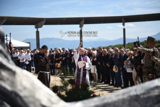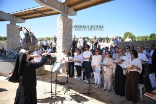 „Ali postoji jedan koji vodi povijest i život. Nama ostaje Krist Isus. Mi u njemu nalazimo izvor, snagu i put. Isus nas poziva da svijetu damo okus, značenje, svrhu, smjer i želju. To je skromna pozicija, zar ne?” (R.R. ) Da, on nam kaže da dane čovječje treba provesti u ljubavi. Da, on nam kaže da onaj koji je u očima svijeta “čudak” ili “idiot” (poput Kneza Miškina u Dostojevskog) nije sposoban dijeliti, gajiti mržnju prema nikome, jer mora postojati Dobrota iznad ljudske podijeljenosti. "Ako postoji ikakva zamjena za ljubav, to je sjećanje." (Josif Brodski) Zato sjećanje spada u sferu svetoga. Križni putovi, jame i stratišta nisu nečija tuđa priča. To je hrvatska priča kojoj se niječe postojanje. Zato je ovo groblje. Zato je ovo sjećanje. Zato smo mi ovdje. Zato su ovi križevi ovdje! Zato je važno graditi život na istini. Samo istini! Amen“.…ovim riječima fra Jozo je zaključio današnju homiliju na Groblju mira.