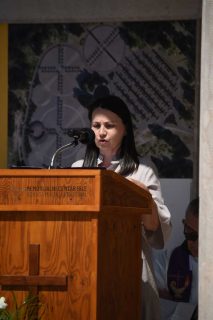 Nakon polaganja vijenaca prisutnima se u ime predsjednika Hrvatskog narodnog sabora (HNS) BiH dr. Dragana Čovića obratila gospođa Marija Buhač, predsjednica Vlade HNŽ-a koja je u svom pozdravnom govoru istaknula: „Narod kojemu zajednički pripadamo, hrvatski narod, kroz svoju povijest nosi teške križeve i pamti ubijanja i progone, režime koji nisu štedjeli nikoga, ni žene, ni djecu, ni starce. Pamti istrjebljenja čitavih naraštaja i pusta sela u kojima su žene u crnini podizale siročad.“ Buhač je naglasila kako svaki bijeli križ nosi ime utkano u slobodu koju danas živimo, a kako nas sjećanje na naše pretke obvezuje da čuvamo vrijednosti za koje su oni dali živote, kao i branitelji Domovinskog rata. Istaknula je kako će na Groblju mira biti 50 tisuća križeva i kako je to isto toliko tisuća obitelji i stotine tisuća potomaka naših žrtava. „Pamtimo, ali ne mrzimo, opraštamo, ali ne zaboravljamo“, poručeno je dalje kroz govor, uz zahvalu Bogu i zavjet da će sjećanje na naše žrtve ostati trajno.