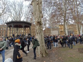 Prosvjed protiv mega farmi pilića i klaonica počeo je u 10 sati na Trgu kralja Tomislava, odakle je prosvjedna povorka krenula prema Zrinjevcu, gdje je održan središnji dio skupa.