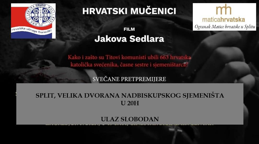 Film Jakova Sedlara “Hrvatski mučenici” prikazivanje u Splitu