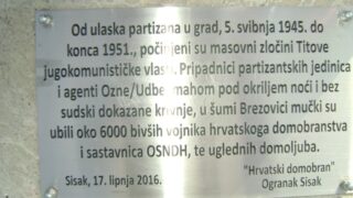 (Sedam desetljeća prešućivana počivališta „Hrvatski domobran“ u Sisku i okolici obilježava „Križem istine“ i spomen-pločama, te medijskim svjedočenjima o partizanskom teroru i masovnim zločinima od 1945. – 1951.)