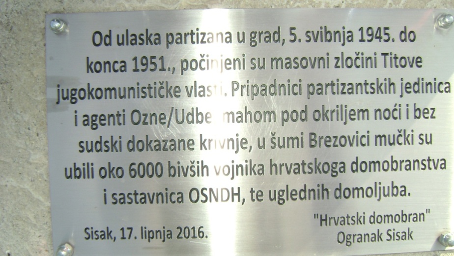 spomen ploča uz Križ isztine u Brezovici