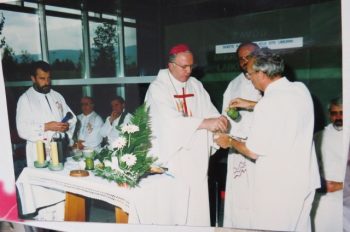 Jedne nedjelje organizirali smo svečanu misu koju je predvodio vojni ordinarij – biskup Jezerinac. Misa je bila kod liftova za kirurgiju, gdje je najširi dio prizemlja. Pripremili smo stolice i klupe za ranjenike i bolesnike. Došlo je dosta osoblja bolnice. Oltar je bio iz kapele. Prije mise biskupu je predan prigodni poklon. S biskupom sam bio u još dva navrata glede organizacije posjeta i razgovora o skrbi, dok je duhovnu skrb kompletno provodio fra Stjepan Bergovec.