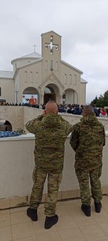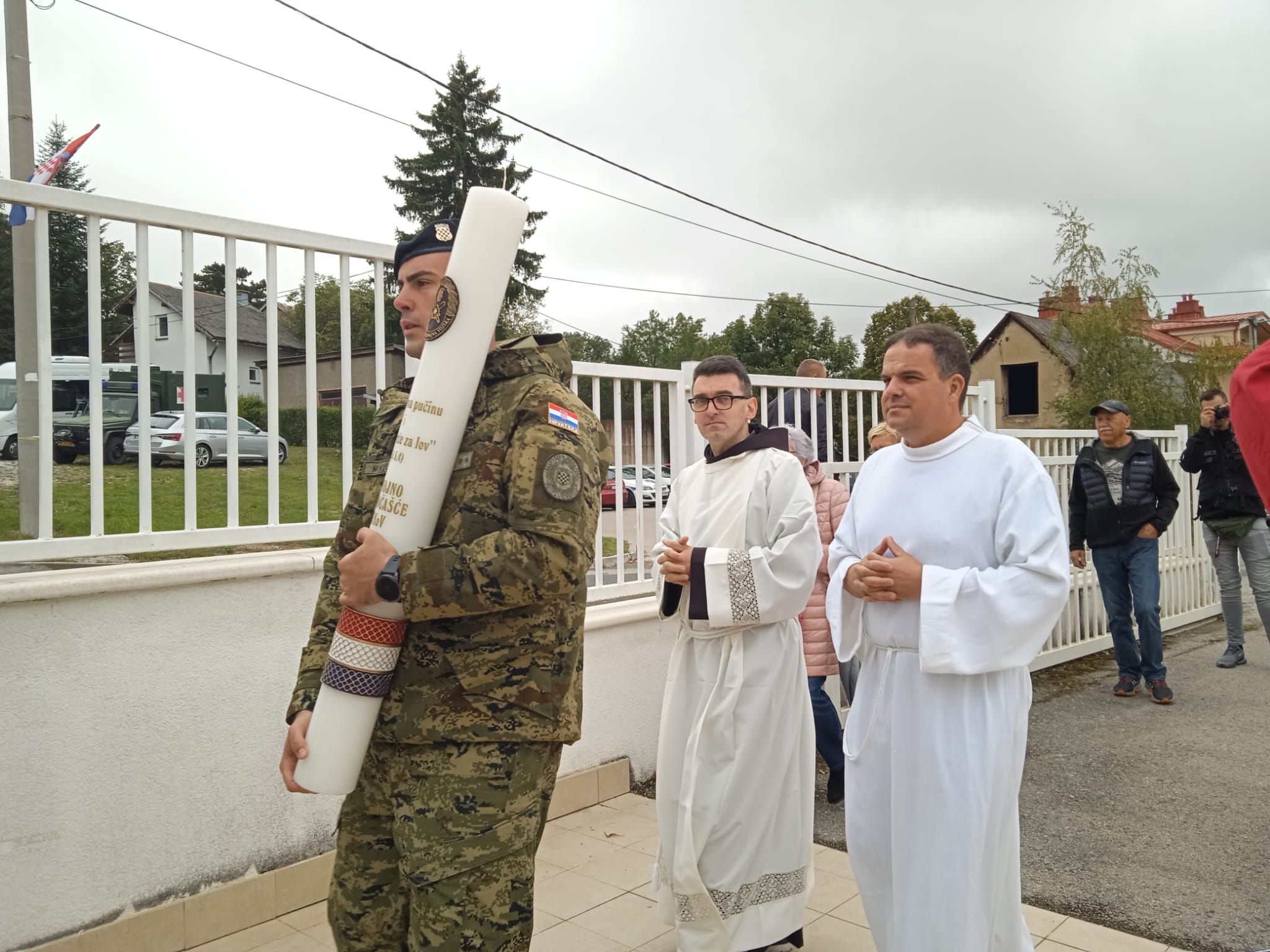 Na platou nas je dočekalo mnoštvo hodočasnika, a među njima bilo je puno vojnika u uniformama. Na okupu su se našli vojnici brigada i postrojbi kopnene vojske iz Slavonije, Dalmacije, Karlovca, Zagreba i drugih krajeva Hrvatske. Bilo je to sada već tradicionalno 9. vojno hodočašće Hrvatske kopnene vojske. Uime svih hodočasnike za sve hrvatske branitelje poginule, nestale i umrle zavjetnu svijeću 9. vojnog hodočašća Hrvatske kopnene vojske zapalio je Blaž Beretin, general bojnik.