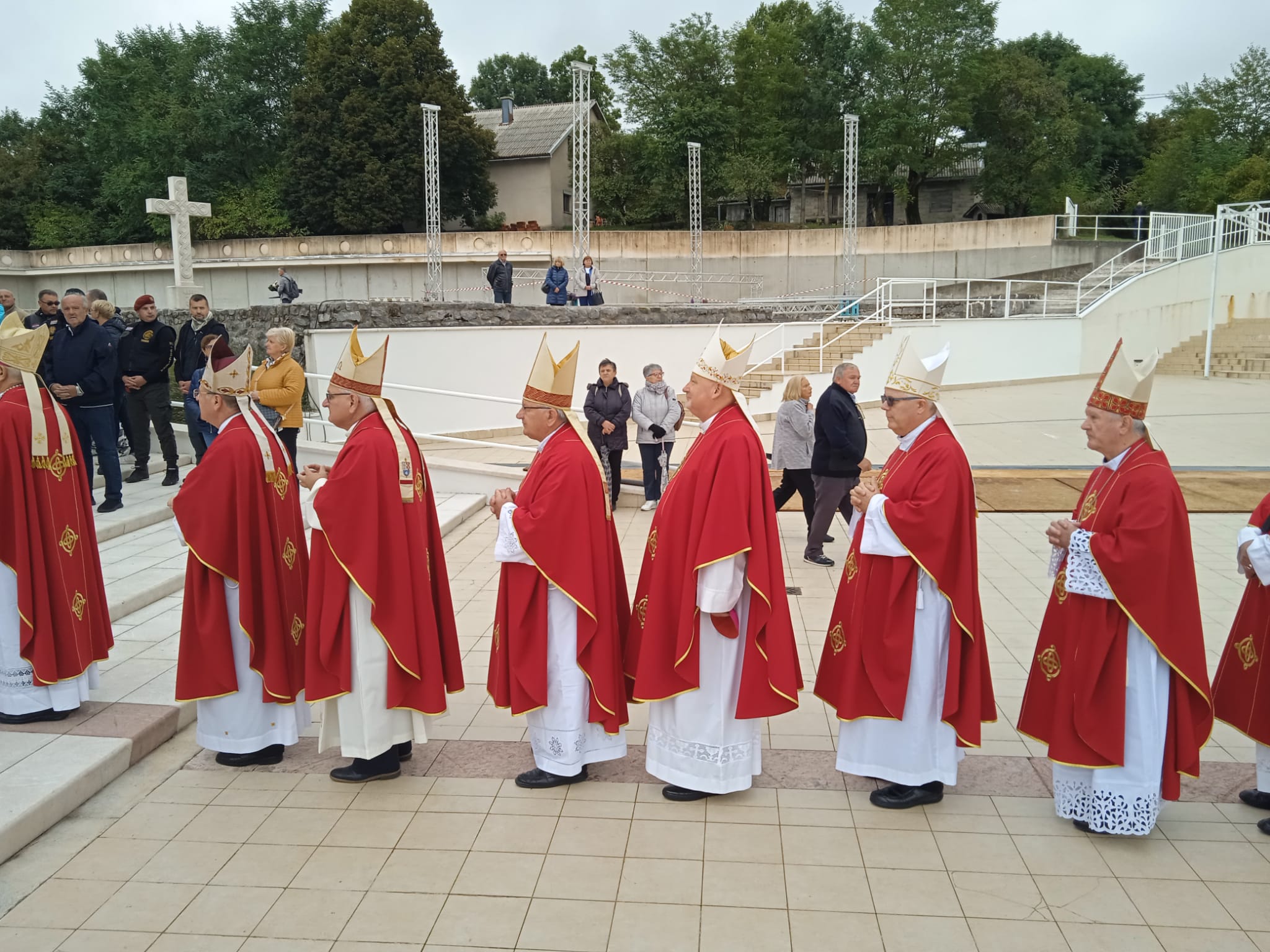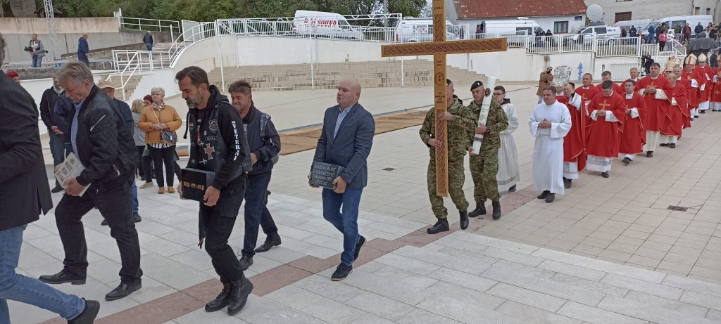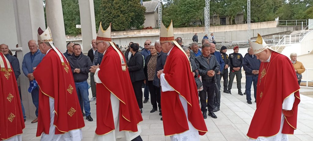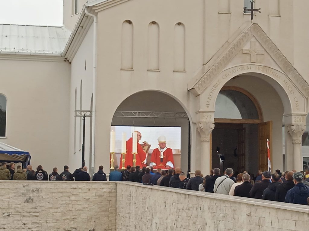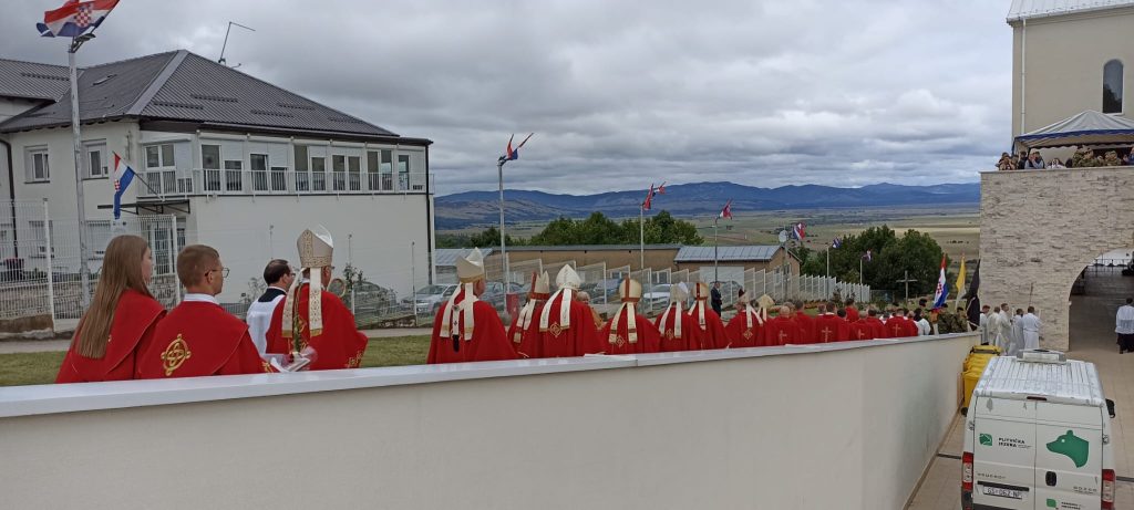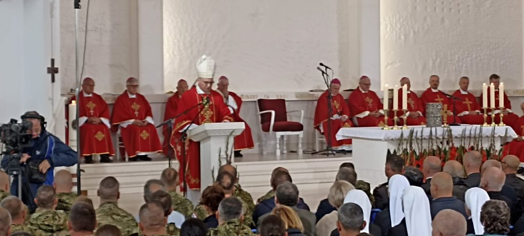 Okupljeni na ovoj „Ličkoj Kalvariji“, oko ove bijele golubice i ove propovjedaonice, okupljeni oko oltara koji uprisutnjuje Kristovu nekrvnu žrtvu, muku, smrt i uskrsnuće, kao Crkva i zajednica vjernika, braća i sestre, uzdižemo ruke Bogu u znak molitve za sve žrtve tijekom višestoljetne hrvatske povijesti. Danas komemoriramo, odajemo pijetet i poštovanje, čast i priznanje žrtvama hrvatskog naroda u čiji je spomen podignuta ova crkva hrvatskih mučenika. Svetim misnim slavljem danas im svima zahvaljujemo za žrtvu života koji su, braneći svoja ognjišta, položili na oltar Domovine, za slobodu i bolje sutra svih onih koji na ovim prostorima žele u miru živjeti, vrjednovati i njegovati darove slobode.
