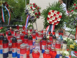 Članovi i prijatelji Hrvatskog žrtvoslovnog društva na posljednjem ispraćaju žrtava jame Jazovka