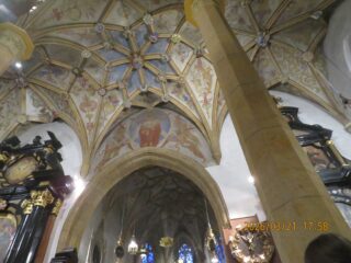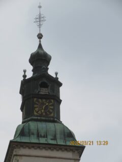 Posebno je na trgu lijepa i prostrana župna crkva sv. Jakova, sagrađena sa zvonikom 1532. godine. Krase ju vitki stupovi, visoki strop ukrašen štukaturom, freskama i grbovima donatora, a posebnu mističnost daju joj vitraji zagasitih boja, koji umanjuju prodor svjetla kroz vitke visoke prozore, poput tamnih vitraja u crkvi Kristova Krvavog Znoja u Maslinskom vrtu. U toj crkvi sv. Jakova imali smo sv. Misu a Slovenskom jeziku