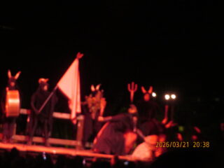 Prisustvovali smo noćnom uprizorenju Pasiona u režiji Marcela Brula, Pred nama su se na pozornici redali prizori mnoštva kostimiranih glumaca i statista, praćeni zvučnim i svjetlosnim efektima. Prizori su bili potpuno razumljivi i bez poznavanja staro slovenskog jezika. Cijela procesija je prikazana u 20 prizora kako slijedi: