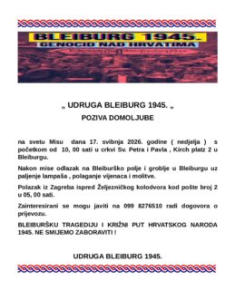 UDRUGA BLEIBURG 1945. – POZIVA DOMOLJUBE