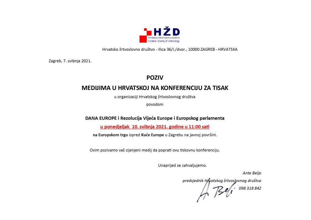 Novosti POZIV MEDIJIMA U HRVATSKOJ NA KONFERENCIJU ZA TISAK u organizaciji Hrvatskog žrtvoslovnog društva Posted 7. svibnja 2021.7. svibnja 2021. HŽD