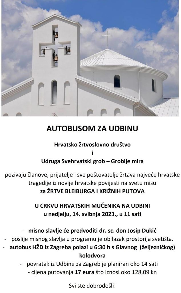 ŽRTVE BLEIBURGA I KRIŽNIH PUTOVA U CRKVU HRVATSKIH MUČENIKA NA UDBINI