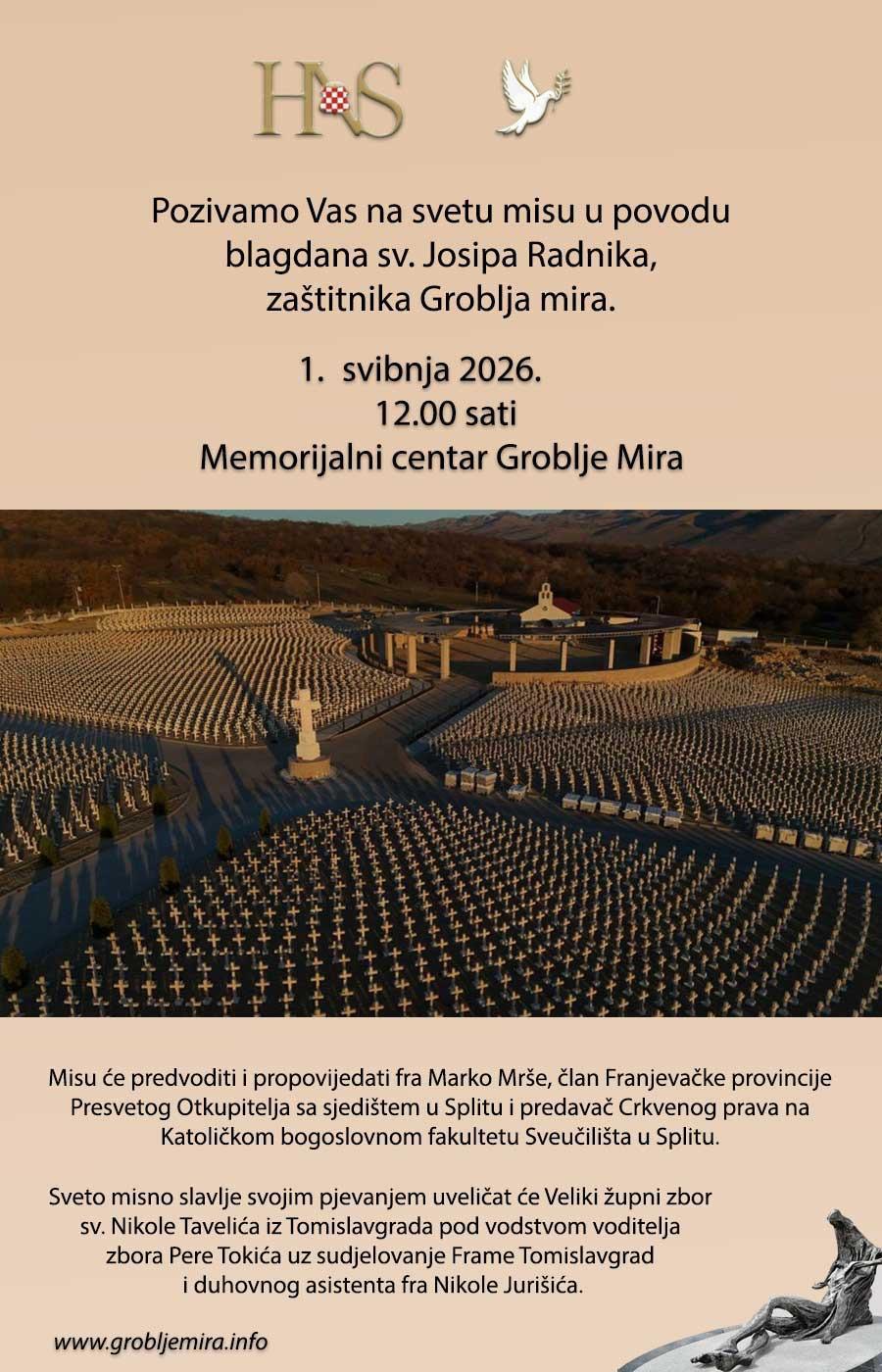 Poziv na svetu misu u povodu blagdana sv. Josipa Radnika, zaštitnika Groblja mira 1. svibnja 2026.