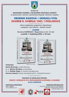 Pozvamo Vas na predstavljanje Zbornika radova s okruglog stola “ZAGREB 8. SVIBNJA 1945. I POSLJEDICE”