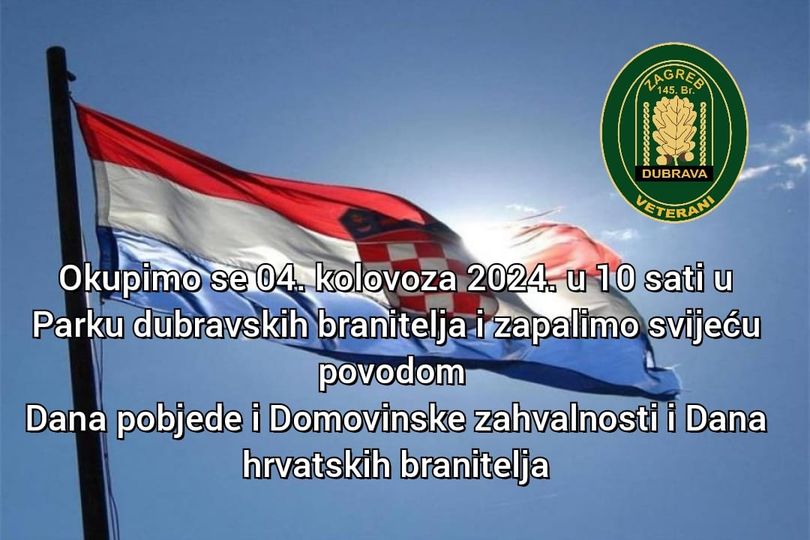 U zagrebačkoj Dubravi – Park dubravskih branitelja – u nedjelju 4. kolovoza 2024. godine u 10 sati svečano se obilježio Dan pobjede i Domovinske zahvalnosti i Dan hrvatskih branitelja te 29. godišnjicu VRO Oluja. U obilježavanju su im se pridružili i članovi Hrvatskog žrtvoslovnog društva Zagreb.